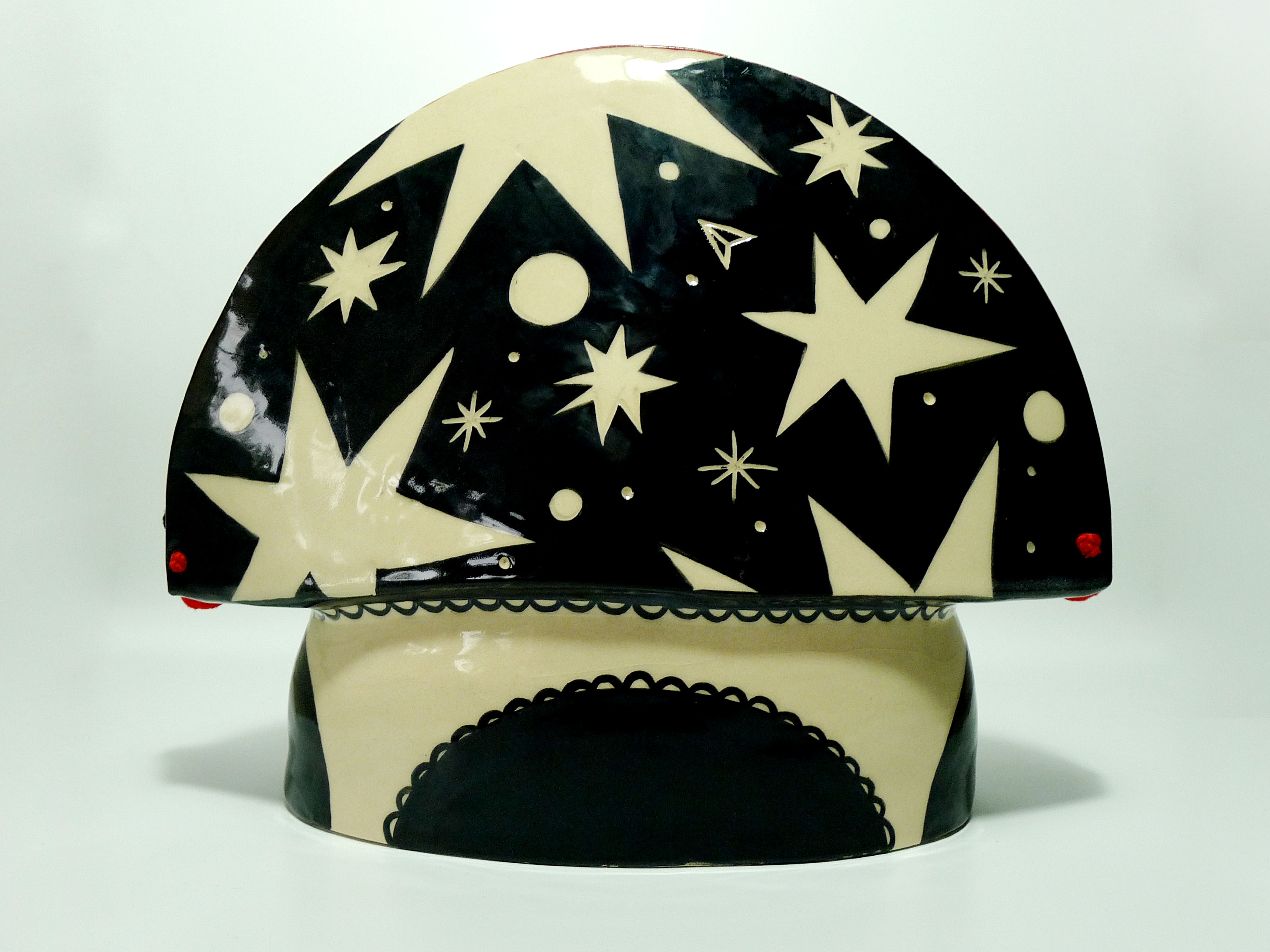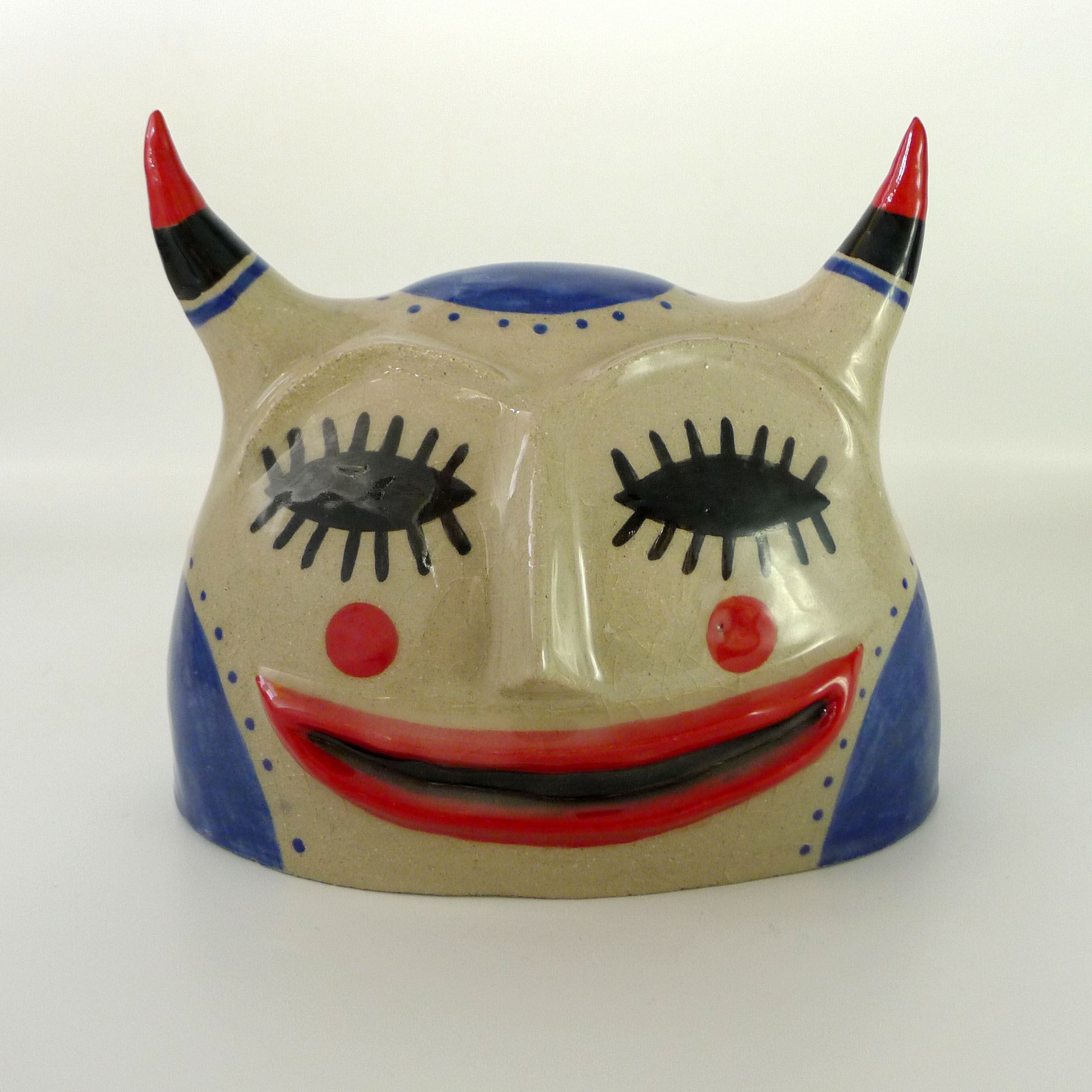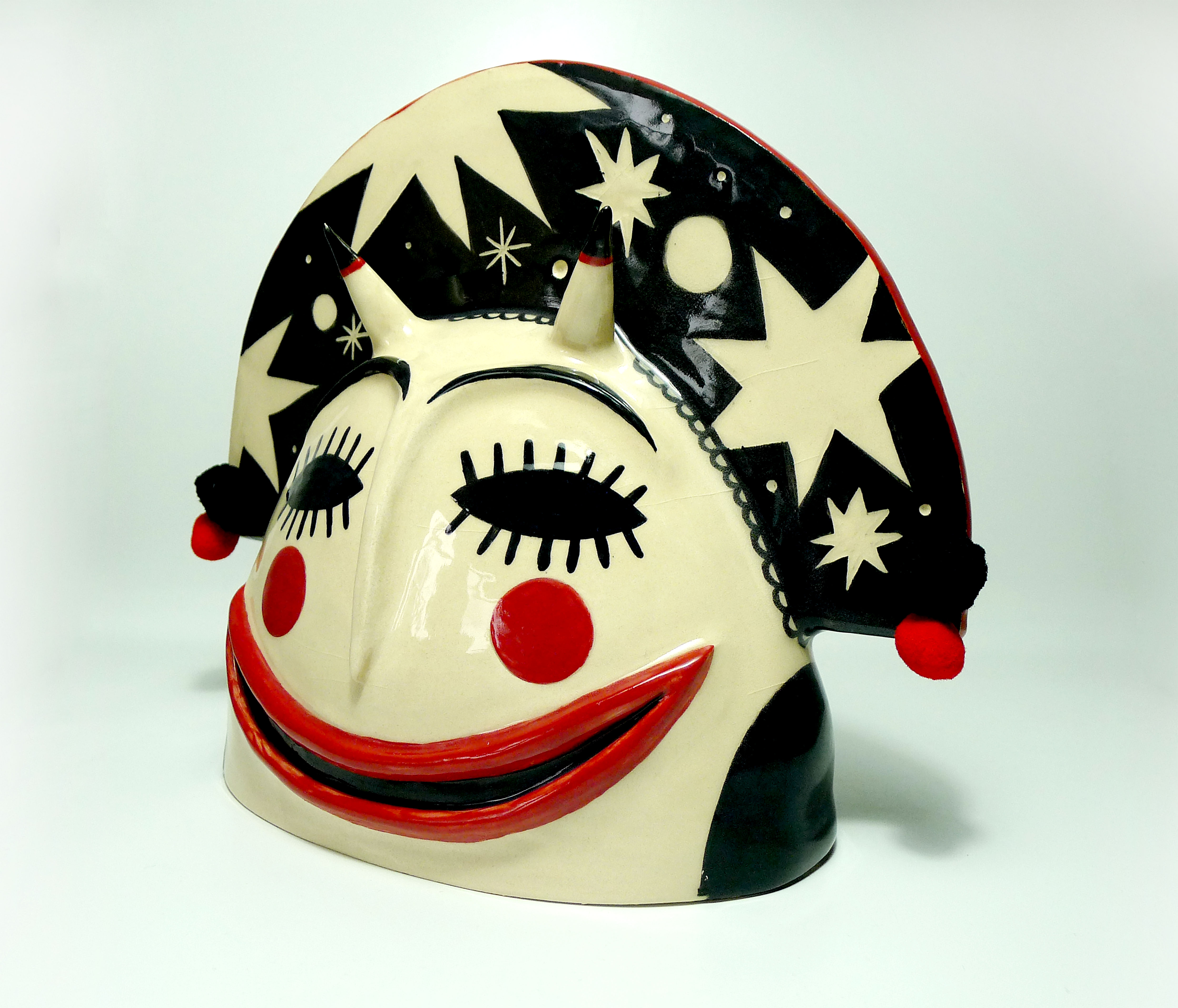 Entroidos Series of sculptures inspired by the traditional masquerades of the Galician carnival.Hand painted ceramics with engobes and pigments. White clay fired at low temperature. Variable measures (20-40 cm. approx.) 2024.