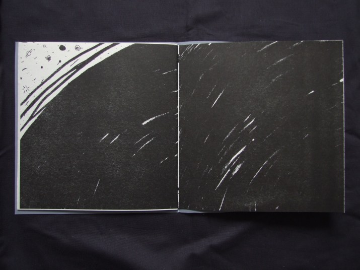 Out there. Edición limitada de trece libros impresos en risografía. Tinta negra negra. Hechos en los talleres de Künstlerhaus Bethanien. Berlin 2015.