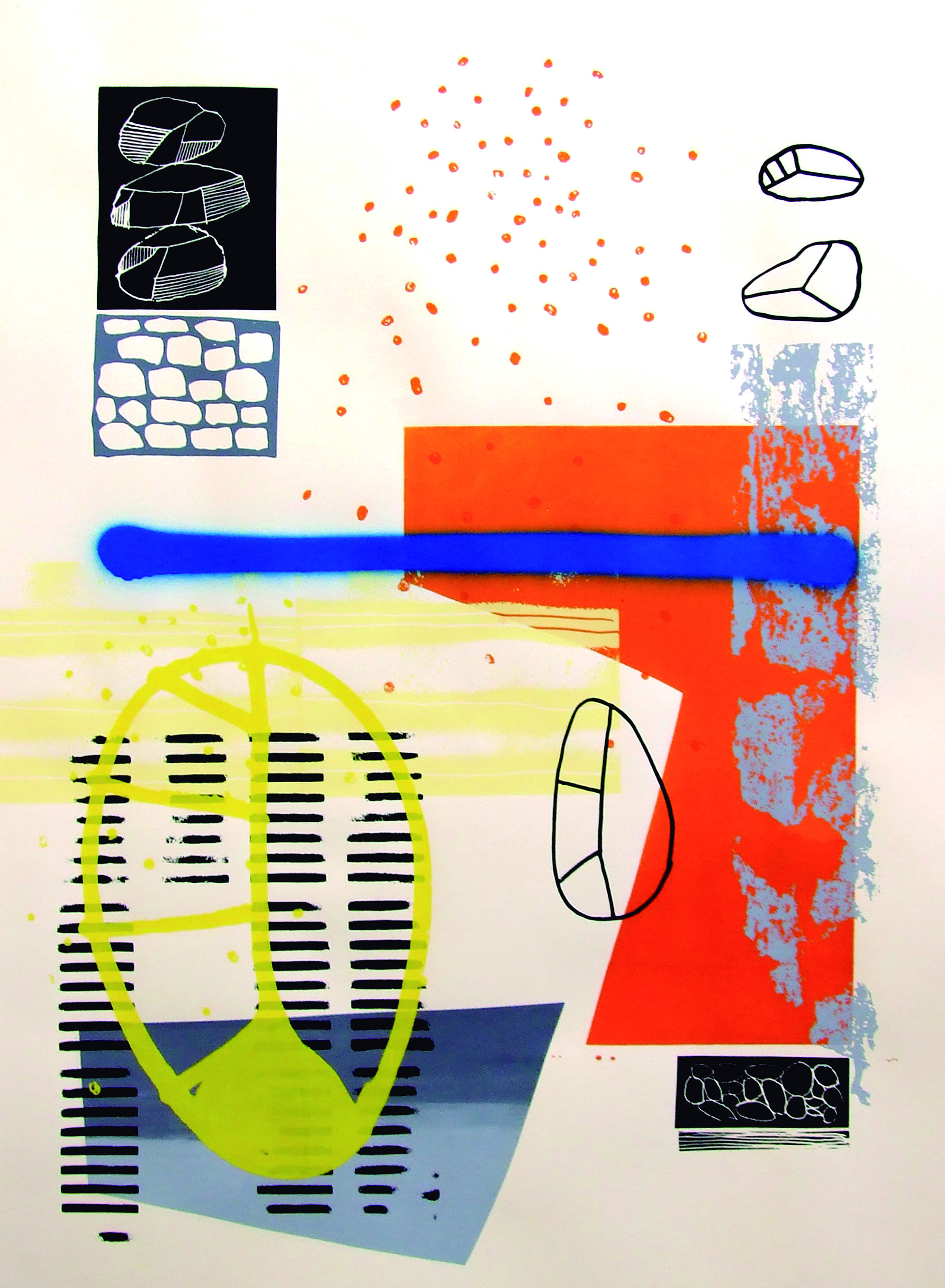 Pieces and stones Serigrafía y técnica mixta sobre papel. 100×70 cm. 3 copias Silkscreen and mixed media on paper. 100×70 cm. 3 copies.