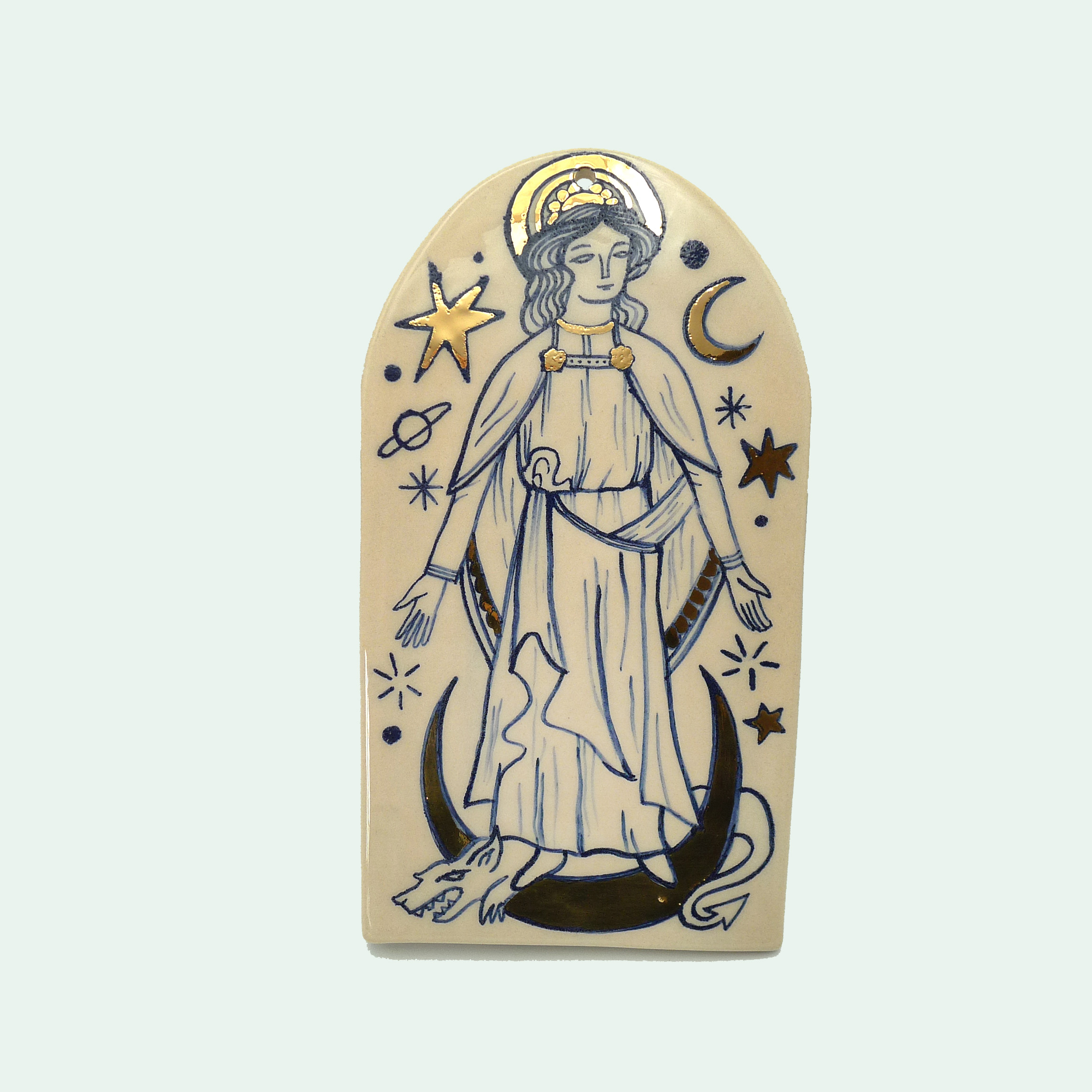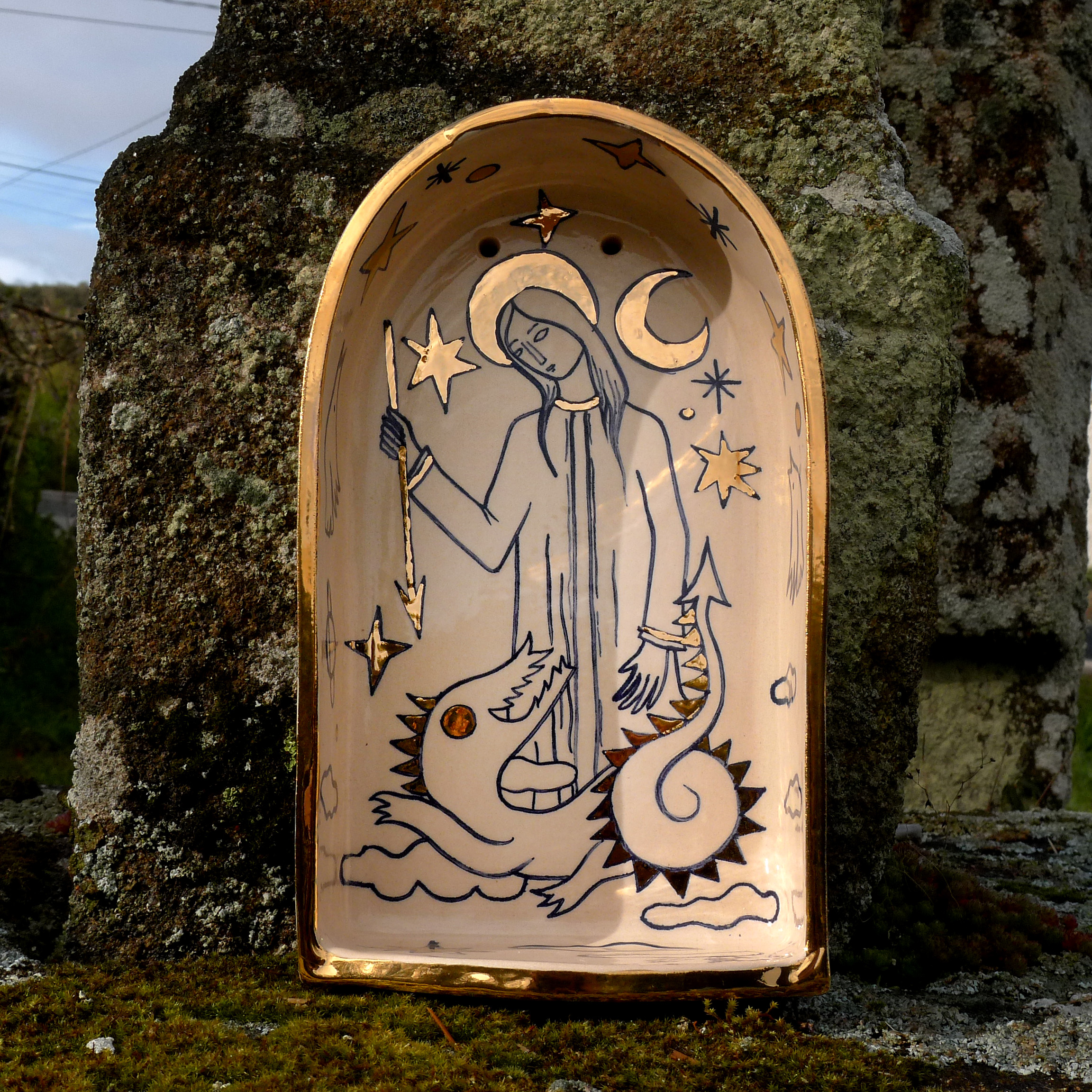 He investigado su iconografía desde los tiempos medievales y cómo fue su asimilación en el territorio de Galicia y de esta investigación salió, por un lado, una serie de piezas realizadas a mano en cerámica para mi proyecto LiMiA y, por otro lado, un video divulgativo explicando la figura de esta santa tan venerada, aún a día de hoy, en Galicia.